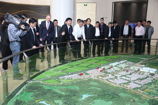 馬省長一行觀看中德金屬生態(tài)城沙盤