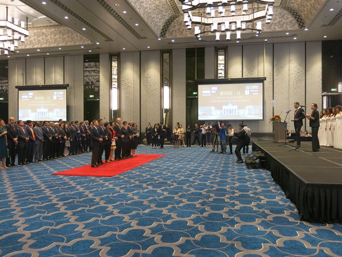 10月11日晚上,德國駐廣州總領(lǐng)事館在廣州舉辦德國統(tǒng)一27周年國慶招待會。廣東省人大常委會副主任羅娟、省政府副秘書長張虎、揭陽市副市長姚麗璇、揭陽市外事僑務(wù)局副局長林益生等相關(guān)領(lǐng)導(dǎo)和嘉賓,各國駐廣州總領(lǐng)事館官員、企業(yè)、協(xié)會、機(jī)構(gòu)等代表共200多人出席。中德金屬集團(tuán)作為活動(dòng)贊助商應(yīng)邀參加。