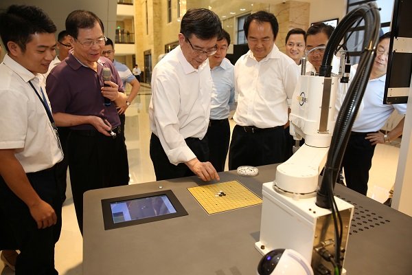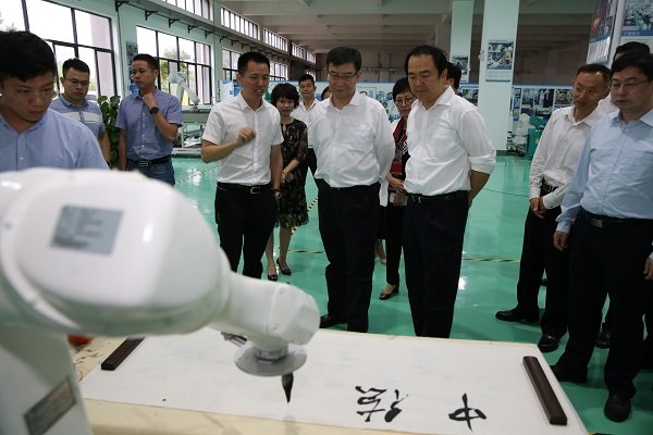 在考察中德巨輪智能工業(yè)4.0產業(yè)基地項目時,黃副省長一行觀看巨輪機器人作業(yè)演示,并對巨輪的智能裝備水平表示肯定,鼓勵巨輪不斷提高智能制造技術。
