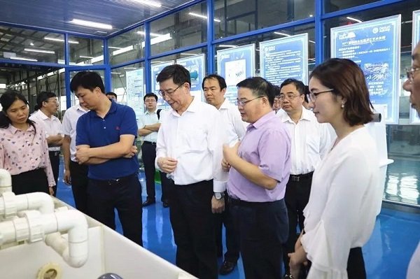 黃副省長一行深入廣東德森環(huán)?萍加邢薰緩S房,考察德森移動式智能生活污水處理設備項目,聽取負責人介紹相關設備及技術后,鼓勵德森環(huán)保加大環(huán)保技術科研創(chuàng)新,為中國環(huán)保事業(yè)做一份貢獻!