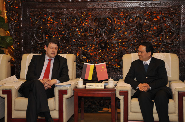 4月10日下午,陳東市長率領(lǐng)揭陽市金屬聯(lián)合會企業(yè)家代表團與德國基民盟主席團成員、德國聯(lián)邦議院聯(lián)盟黨黨團外交政策發(fā)言人、德國青年聯(lián)盟主席菲利普·米斯菲爾德先生率領(lǐng)的德國基民盟企業(yè)家代表團在北京進行會談。
