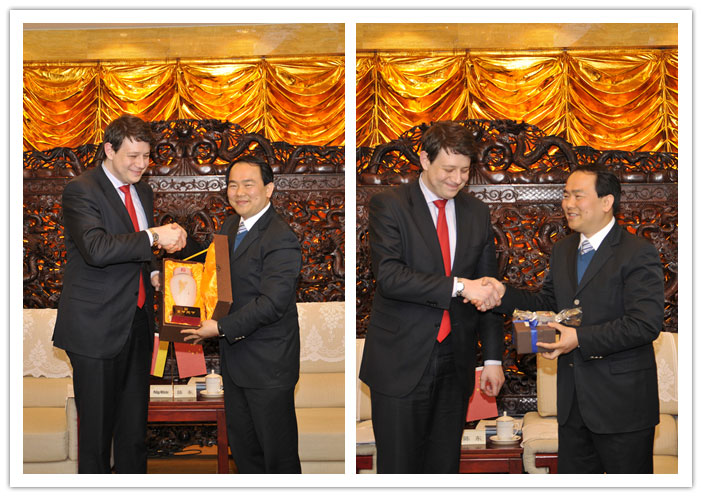 會后陳東市長和米斯菲爾德先生互贈禮物,中德雙方企業(yè)家代表團共進晚餐并深入交流。