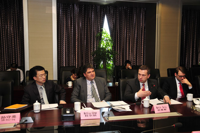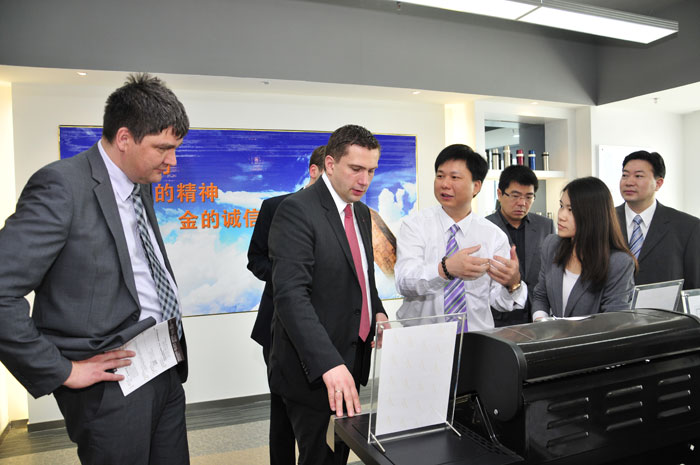市長助理麥延厚首先對杜里希一行的到來表示熱烈歡迎。隨后雙方共同聽取了中德金屬生態(tài)城城市規(guī)劃設(shè)計(jì)報(bào)告,對金屬生態(tài)城項(xiàng)目的總體情況有進(jìn)一步的了解。杜里希先生在產(chǎn)品質(zhì)量、教育模式、基礎(chǔ)設(shè)施、能源消耗等方面向我方代表介紹了的德國工業(yè)政策,以及德國企業(yè)家在中國太倉投資的經(jīng)驗(yàn)與遇到的問題。杜里希先生表示,希望中德雙方在平等的層面上共商合作、相互借鑒,并以教育培訓(xùn)和產(chǎn)品質(zhì)量作為切入點(diǎn),最終實(shí)現(xiàn)中德金屬生態(tài)城的宏偉藍(lán)圖。