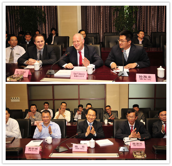 陳東市長向沙爾平先生介紹了中德金屬生態(tài)城項目建設的實質性進展。目前中德金屬生態(tài)城建設進展順利,園區(qū)規(guī)劃已進一步完善,園區(qū)公共服務平臺、污水處理設施、園區(qū)大道等項目的建設都得到有效推進,聯(lián)合會與德國的對接也逐步清晰。