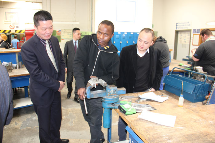 代表團(tuán)在沙爾平先生的介紹下,深入考察了德國(guó)的職業(yè)教育體系,先后參觀(guān)了黑森-圖林根大區(qū)工會(huì)下屬的職業(yè)技術(shù)學(xué)校海因里希-克萊因爾學(xué)校,實(shí)地參觀(guān)了德國(guó)職業(yè)技術(shù)學(xué)校教學(xué)現(xiàn)場(chǎng)。德國(guó)學(xué)生經(jīng)過(guò)培訓(xùn)后達(dá)到的高超技藝,給代表團(tuán)留下了深刻印象,并立即與相關(guān)部門(mén)達(dá)成了職業(yè)教育培訓(xùn)合作意向,為揭陽(yáng)創(chuàng)辦產(chǎn)業(yè)技術(shù)應(yīng)用大學(xué)積累了寶貴的合作資源。