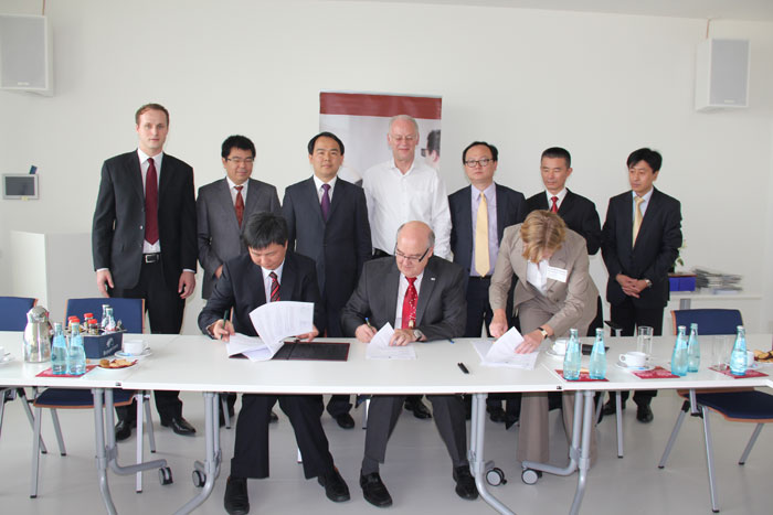揭陽市金屬企業(yè)聯(lián)合會吳克東會長與達姆施塔特應(yīng)用科技大學(xué)校長Stengler教授簽訂職業(yè)教育合作框架協(xié)議
