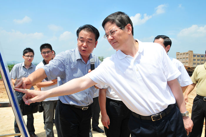 徐少華副省長(zhǎng)(右二)在中德大道建設(shè)現(xiàn)場(chǎng)聽取建設(shè)規(guī)劃匯報(bào)