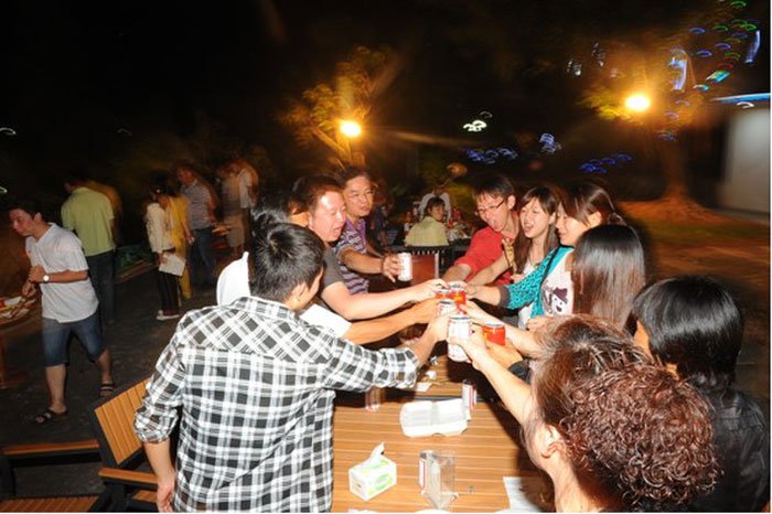 燒烤聚餐活動中,全體員工開懷暢飲、共敘友誼