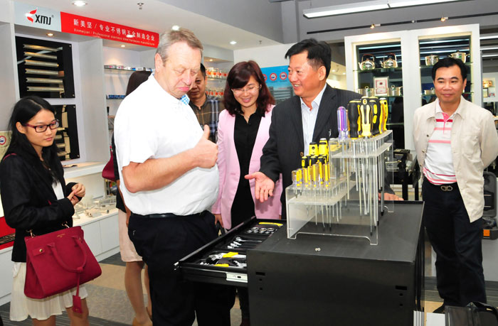海姆•邁爾先生參觀聯(lián)合會展廳,對展廳五金產(chǎn)品予以充分肯定
