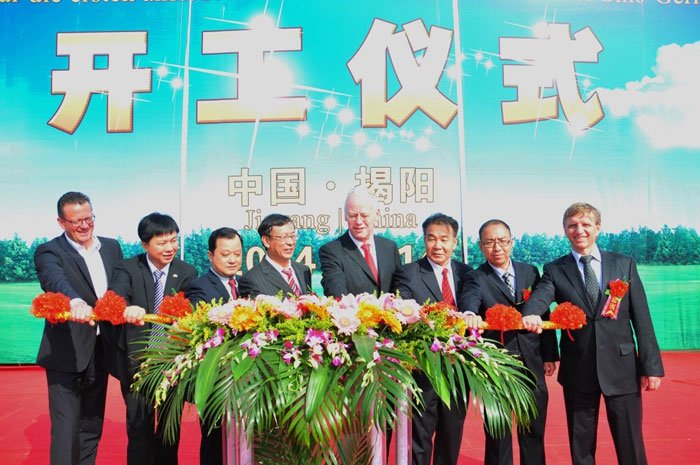 中德代表共同為開(kāi)工儀式啟動(dòng)吉祥桿