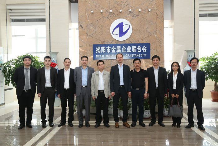 在市金屬企業(yè)聯(lián)合會(huì)就項(xiàng)目合作座談后,史偉浩一行與市領(lǐng)導(dǎo)、中德金屬集團(tuán)相關(guān)領(lǐng)導(dǎo)合影