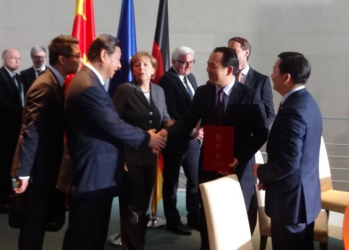 國家主席習(xí)近平在訪問德國期間,與德國總理默克爾共同發(fā)表《建立中德全方位戰(zhàn)略伙伴關(guān)系的聯(lián)合聲明》,并見證了涉及汽車、信息化、金融、節(jié)能環(huán)保等多個(gè)領(lǐng)域的中德雙邊合作文件的簽署。簽約項(xiàng)目中“中德資源再生基地”項(xiàng)目來自廣東。作為此次簽約的10個(gè)項(xiàng)目中唯一涉及節(jié)能環(huán)保的項(xiàng)目,“中德資源再生基地”落戶揭陽,由揭陽市中德金屬集團(tuán)、廣東省廣晟資產(chǎn)經(jīng)營有限公司和德國歐綠保集團(tuán)三方共建,是落戶在廣東揭陽的中德金屬生態(tài)城的關(guān)鍵項(xiàng)目。