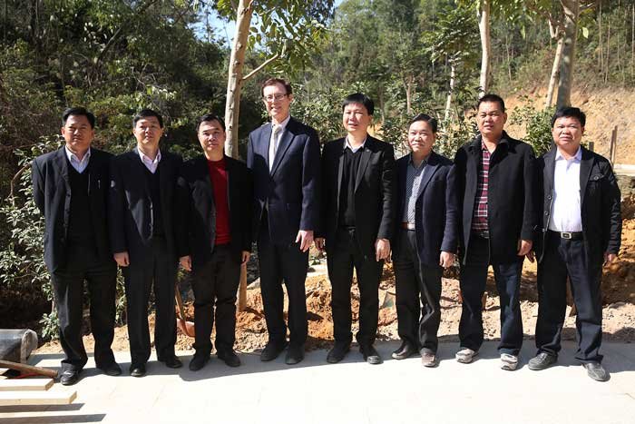 呂海慕與揭陽有關(guān)領(lǐng)導(dǎo)、中德金屬集團(tuán)董事長吳克東在萬畝森林公園植樹后合影
