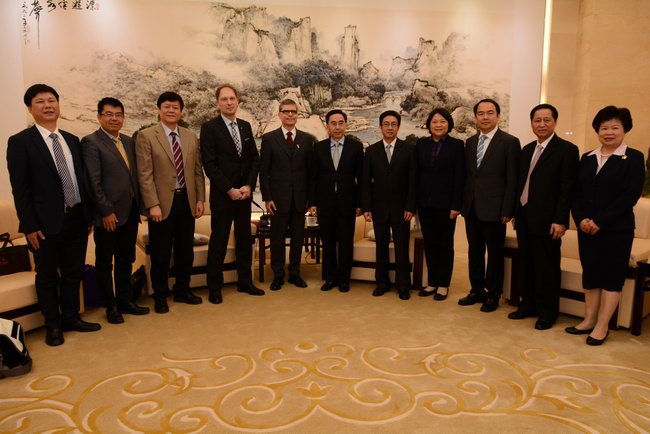 朱小丹對(duì)德國(guó)客人的到來表示歡迎。他指出,埃斯林根應(yīng)用科技大學(xué)作為德國(guó)具代表性的“雙元制”高等職業(yè)院校,與廣東工業(yè)大學(xué)在揭陽共建“雙元制”職業(yè)教育大學(xué),將成為廣東乃至國(guó)內(nèi)首個(gè)與國(guó)外應(yīng)用科技大學(xué)合作辦學(xué)項(xiàng)目。廣東當(dāng)前正處于加快轉(zhuǎn)型升級(jí)的關(guān)鍵階段,高技能人才包括技術(shù)工人、技師、工程 師等嚴(yán)重短缺,非常希望學(xué)習(xí)借鑒德國(guó)“雙元制”職業(yè)教育模式和產(chǎn)業(yè)發(fā)展經(jīng)驗(yàn),將德國(guó)“雙元制”職業(yè)教育理念和辦學(xué)模式復(fù)制到廣東,不斷提升我省高等職業(yè)教育水平,為我省產(chǎn)業(yè)轉(zhuǎn)型升級(jí)培養(yǎng)出更多高技術(shù)、高技能人才。希望通過雙方共同努力,建立面向產(chǎn)業(yè)應(yīng)用的研發(fā)合作基地,在廣東乃至全國(guó)起到示范引領(lǐng)作用,成為中德合作的亮點(diǎn)。省政府將調(diào)動(dòng)各方面力量,加快推進(jìn)合作辦學(xué)各項(xiàng)工作。