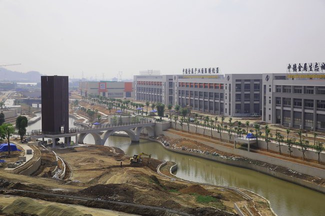 中德金屬生態(tài)城雕塑公園北岸場地已進行鐵欄桿電焊和景觀塔裝飾燈安裝