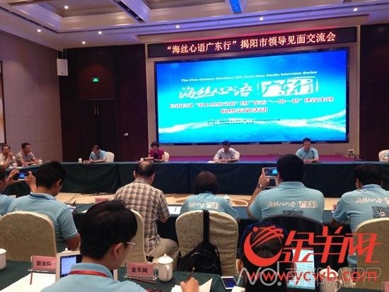 10月16日上午,由中央網(wǎng)信辦、廣東網(wǎng)信辦主辦,汕頭市委宣傳部、潮州市委宣傳部、揭陽市委宣傳部和金羊網(wǎng)聯(lián)合承辦的“海絲心語廣東行”——民訪民議“海上絲綢之路”暨廣東省“一帶一路”建設(shè)主題網(wǎng)絡(luò)采風(fēng)活動(下稱“海絲心語廣東行”)進(jìn)入行程的最后一天,20位網(wǎng)絡(luò)名人及媒體記者與揭陽市有關(guān)領(lǐng)導(dǎo)就積極參與21世紀(jì)海上絲綢之路建設(shè)展開交流。會后,采風(fēng)團(tuán)還走訪了位于揭陽市玉窖鎮(zhèn)的中德金屬生態(tài)城,共同見證這座有著“五金之都”之稱的制造業(yè)城市,是如何走上一條全新的生態(tài)建設(shè)與發(fā)展道路。