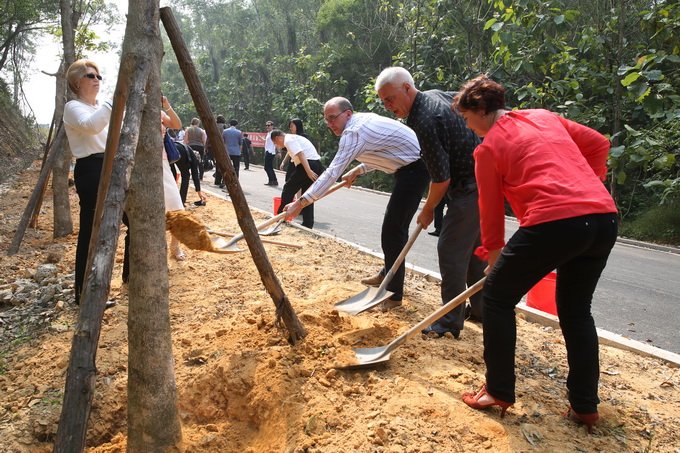 德國中小企業(yè)經理人一行與揭陽市領導及企業(yè)家在中德萬畝森林公園共植友誼樹