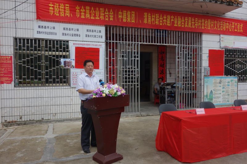 根據(jù)揭陽市委、市政府關(guān)于動(dòng)員市社會(huì)組織參與精準(zhǔn)扶貧的指示精神,9月6日上午,市經(jīng)信局、市金屬企業(yè)聯(lián)合會(huì)、中德金屬集團(tuán)與揭西縣坪上鎮(zhèn)潭角村聯(lián)合舉行共建產(chǎn)業(yè)融合發(fā)展先導(dǎo)村簽約暨村文化活動(dòng)中心開工儀式,爭(zhēng)取把該村打造成揭陽互聯(lián)網(wǎng)+精準(zhǔn)扶貧、精準(zhǔn)脫貧的示范村,推動(dòng)貧困戶早日脫貧致富。
